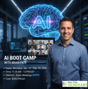 AI Boot Camp with Brian Pate is a six-week online training program designed to help real estate agents understand artificial intelligence and use it with confidence in their daily business. The program runs Mondays from Jan. 12 through Feb. 16, 2026, from 11:15 a.m. to noon via Zoom.